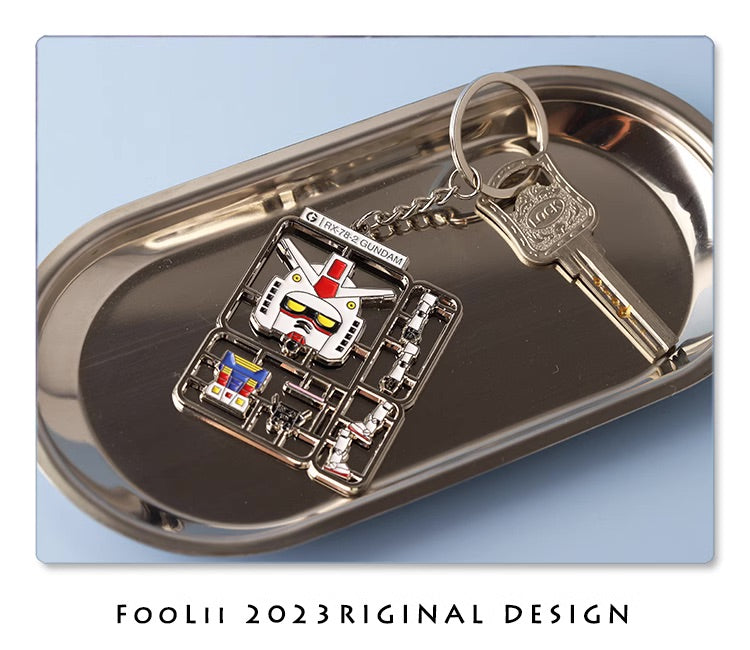 The FooLii RX-78-2 Metal Keychain is a key to unlock your inner Gundam fan! This metal keychain is hand-painted with a laser-cut design that features a classic robot - perfect for the mecha maniac in your life! Get your hands on this one-of-a-kind accessory today!
