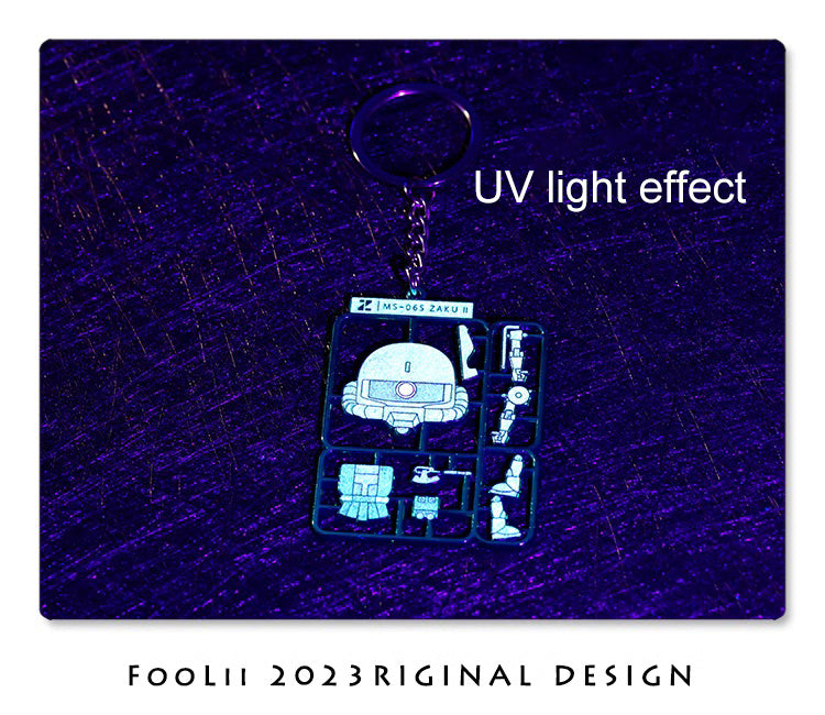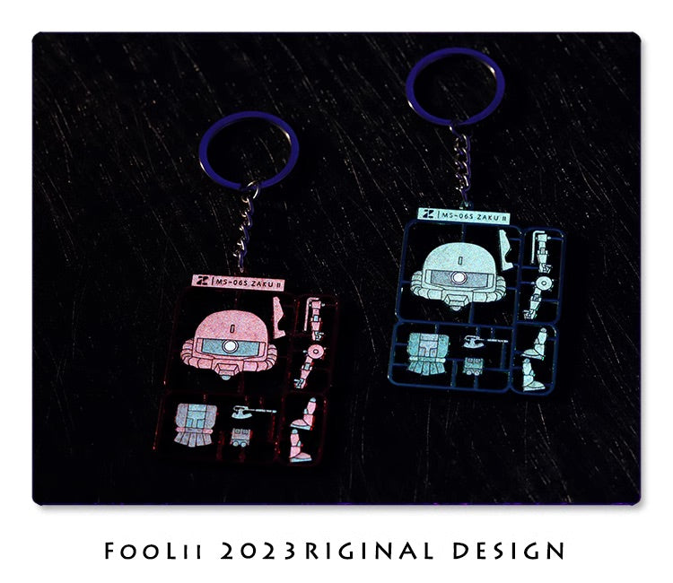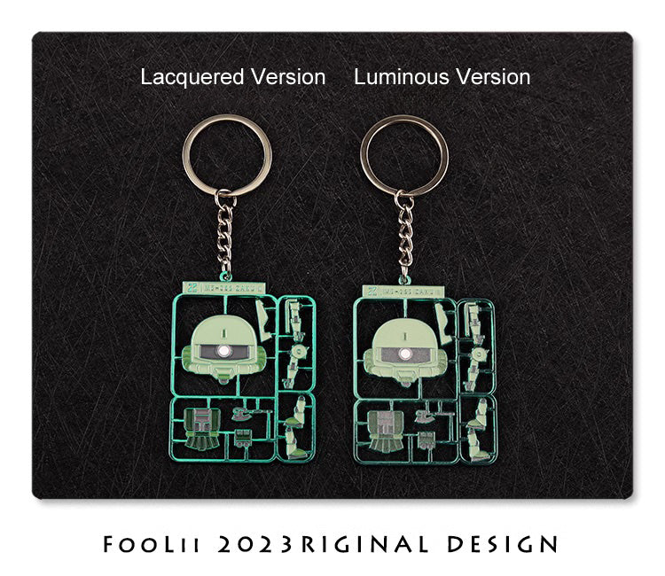 The FooLii ZAKU Metal Keychain is a key to unlock your inner Gundam fan! This metal keychain is hand-painted with a laser-cut design that features a classic robot - perfect for the mecha maniac in your life! Get your hands on this one-of-a-kind accessory today!
