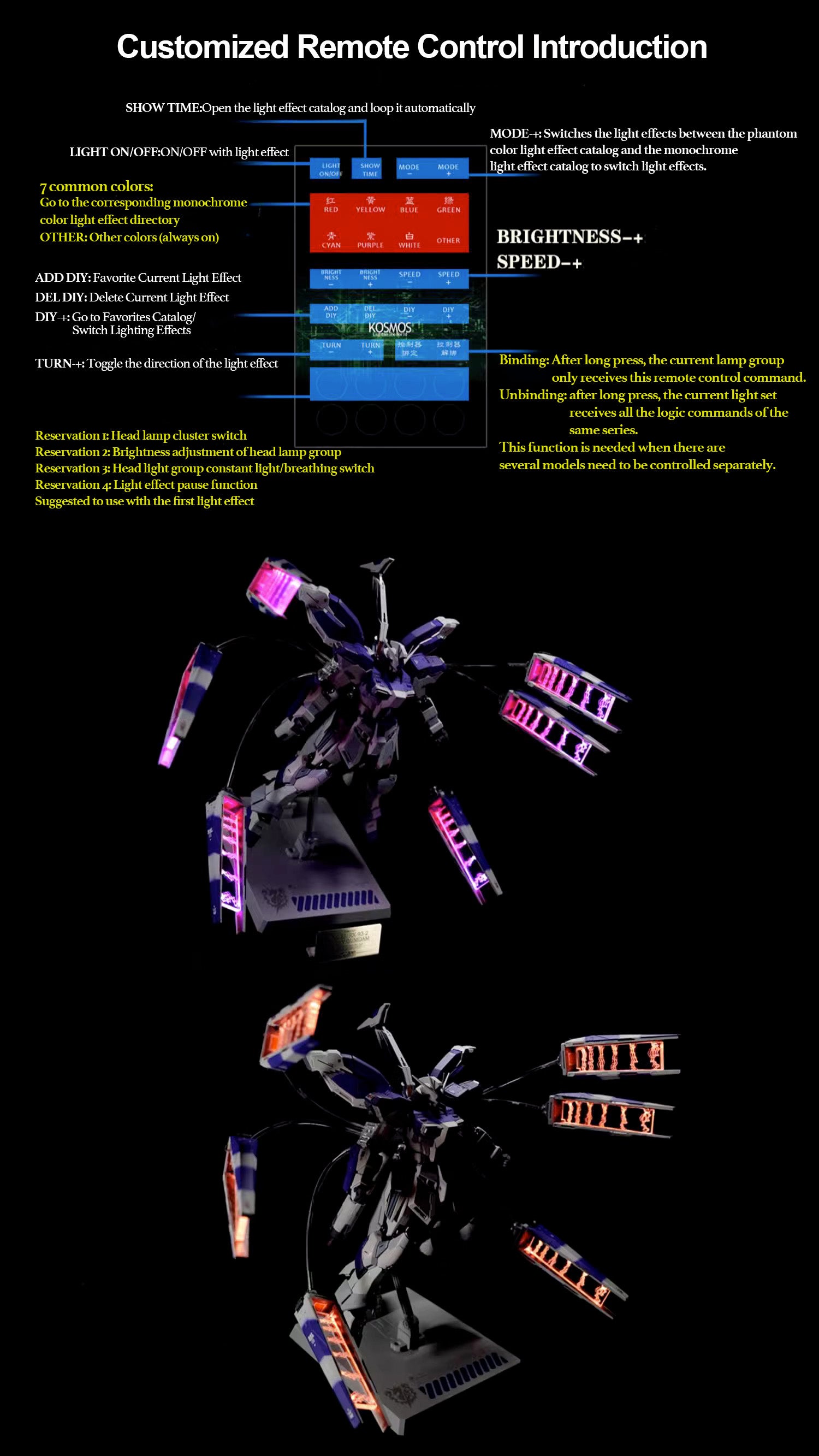 Extra head light set (optional, does not affect the perception). Friendly reminder, MB RX-93 This headlight can not be installed,Please note in advance.